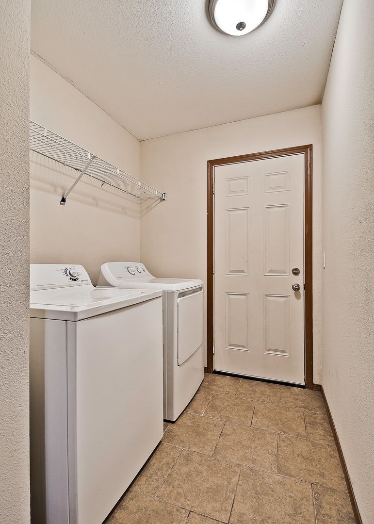 Spacious 3 bedroom/2 bath duplex with a large kitchen with all appliances including a full size washer and dryer, fenced backyard, double car garage